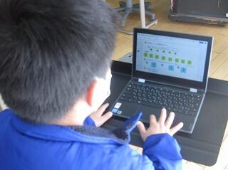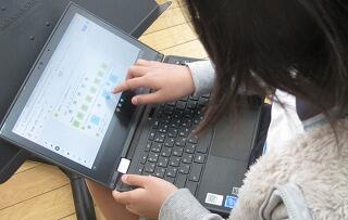12月3日(金)、2学期のまとめの時期になりました。5年生の音楽では、タブレットPCで復習と小テストをしていました。画面の楽譜を見ながら続きの旋律を考えたり、和音の音を聞いて合う音を選んだりしました。入力が終わると最後に先生に送信します。ジャムボードを使って答えを貼り付けたり、入れ替えたり上手に操作できていました。
