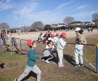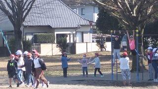 12月8日(水)、朝夕は寒いのですが、お昼はぽかぽか暖かい日が続いています。昼休みになると子ども達は元気よく外で遊んでいます。おにごっこやなわとび、鉄棒、ボール遊びなど。どんぐり拾いや砂場での遊びも隠れた人気です。半袖になっている子もいました。にぎやかな声でいっぱいの運動場です。