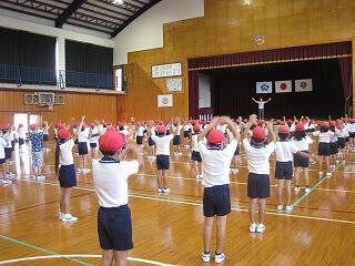 10月11日(月)、2年生が運動会のダンスの練習をしていました。何やら都城の方言の曲に合わせて楽しそうに踊っています。みんなで右腕を上げる決めポーズをキリッと揃えていました。