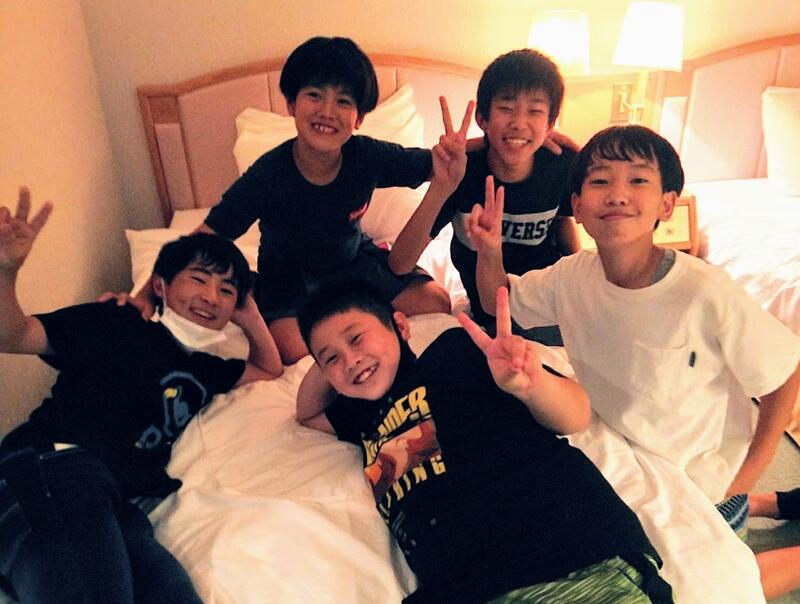 時間通りにホテルに到着。みんなとても元気です。大きなホテルにびっくりしていました。入館式をした後に夕食を食べました。