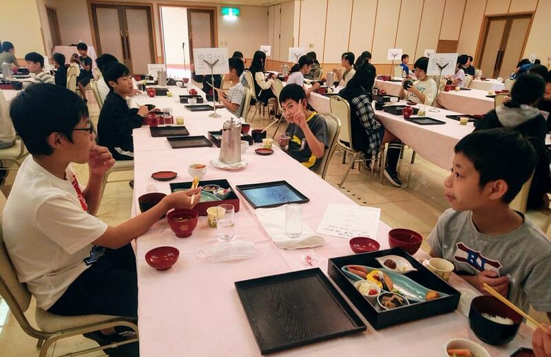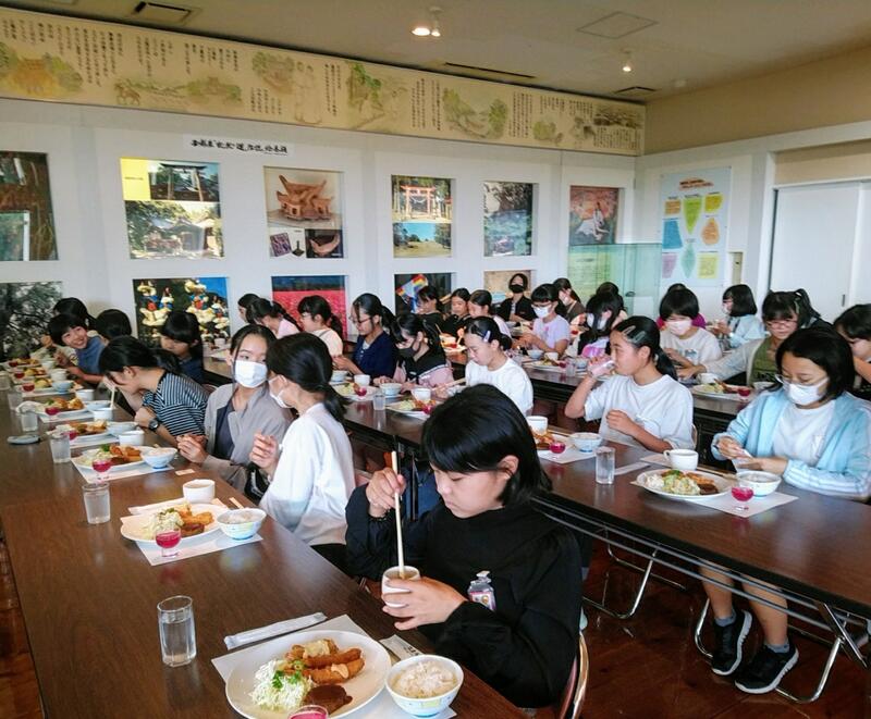 お昼ごはんです。おび天を初めて食べた子どももたくさん。美味しい!の声が聞こえました。