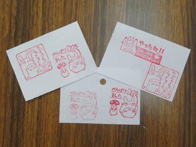 昼休みに、2年生6名が校長室に集まり、「おはよう切符」にスタンプを押してくれました。