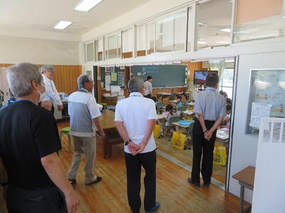 授業中でしたが、子どもたちは地域で見かける方が来られたことに、驚いたり、喜んだりしていました。ある委員の方は、「あの子は、幼稚園の時から知っているんだよ。成長したよ。」と教えていただきました。