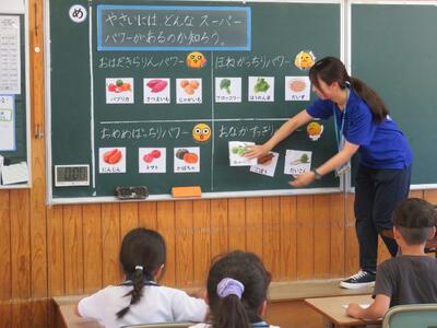 学級活動「野菜をおいしく食べよう」野菜を食べることの大切さを知り、好き嫌いせずいろいろな野菜を食べようとする態度を育てることが目標の授業です。