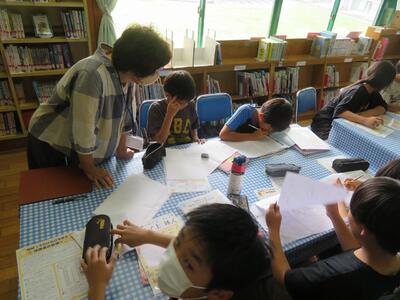 また、子どもたちから、「スタンプ2個使っていいですか?」「縦向きで作ってもいいですか?」など、ユニークなアイディアを出してくれました。さすが子どもたちです。