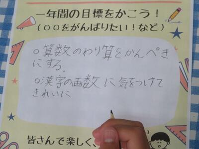子どもたちが書いた目標です。それぞれに目標をもってこの学習会に参加していることが伝わってきました。