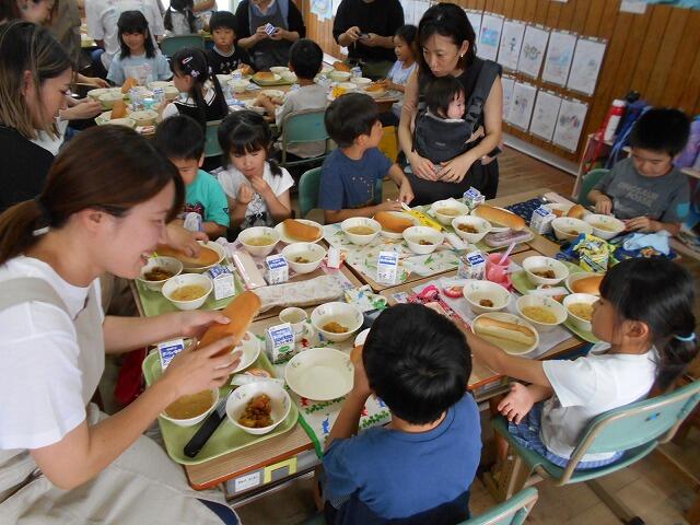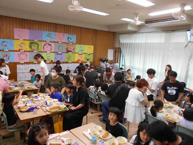 1年生は、懇談会終了後「学年レクレーション」として親子で給食を一緒に食べました。