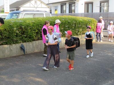 ちょうど、横市地区の民生委員の皆さんが朝の挨拶運動をしてくださっていたので、その様子も見られました。