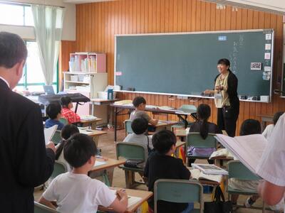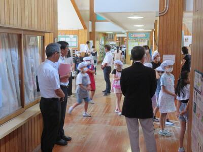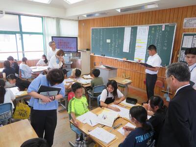 教育委員会の先生方からは、子どもたちの挨拶が素晴らしいこと、一生懸命に授業に取り組んでいることなど、お褒めの言葉をいただくとともに、さらなる充実を図るための具体的な助言をいただきました。