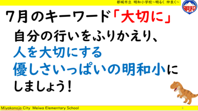 普段の自分の行いを振り返り、相手を大切にする優しさいっぱいの言葉であふれる明和小になってほしいと思います。
