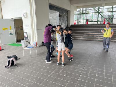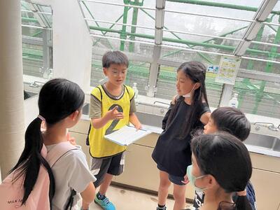 引率職員はチェックポイントで子どもたちの動きを確認しています。