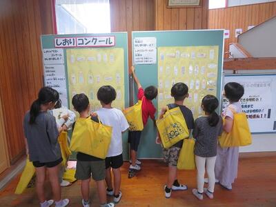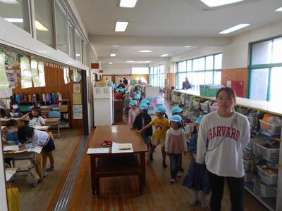 五十市こども園の皆さんの学校見学もありました。1年生のお兄さんお姉さんが勉強する様子を静かに参観してくれました。小学校の雰囲気が伝わったと思います。