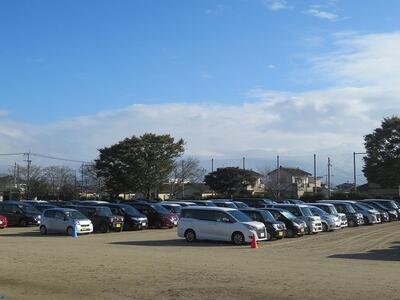 駐車場ではさまざまな出店があり、多くの人でにぎわっていました。
