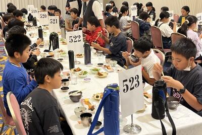 昨日は自主研修でとても疲れたのか、夜はぐっすり眠れたようでした。朝食会場に集まった子どもたちはまだ眠そうです。