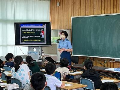 都城警察署の方にSNSやインターネットの危険性について5年生と6年生に話していただきました。