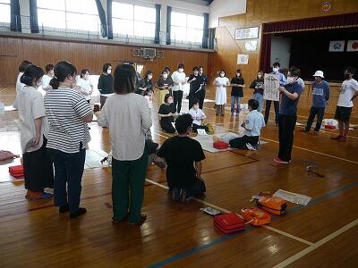 心肺蘇生法とAEDの使い方について、職員がグループに分かれて実習しました。