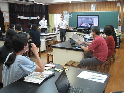 9月9日(木)、放課後に先生達がタブレットPCを使って勉強をしています。講師とオンラインでつないで、子供たちが楽しく取り組めるようなドリルを体験しています。国語、算数、理科、社会、英語、音楽などの問題を試して、利用方法を話し合っています。