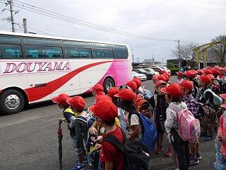 天候が心配されましたが、なんとかもちこたえ、遠足に行くことができました。この日を楽しみにしていた1年生。大きなバスを見て、さらにテンションが上がりました。
