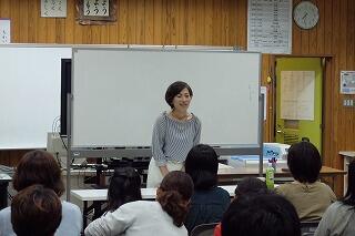 今回は、コスプレ美魔女講演家 「キャサリン」こと、相良照代さんのお話を聴かせていただきました。「人生、笑ったもん勝ち」と銘打って、楽しく子育てをすることの大切さや、笑顔で過ごすことの大切さについて、楽しく伝えていただきました。