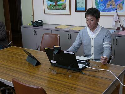 上の写真は、これまでの児童の様子を写真で説明している様子です。