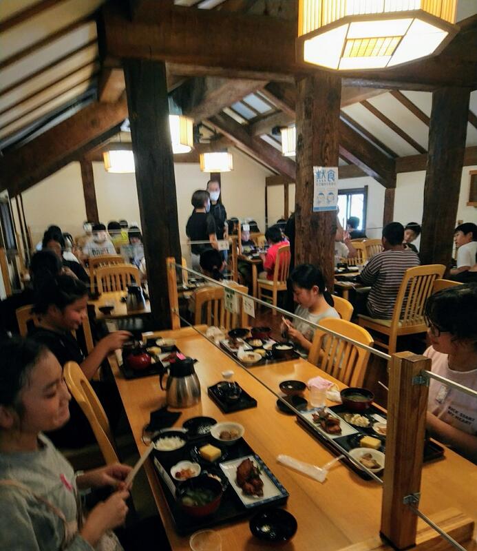 お昼ごはんです。おび天を初めて食べた子どももたくさん。美味しい!の声が聞こえました。