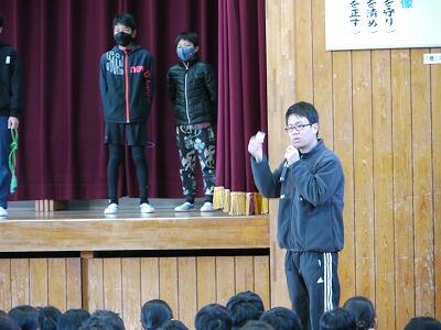 本日は、全校朝会で体育委員会と保健委員会が発表をしました。