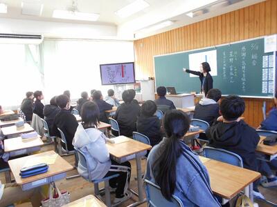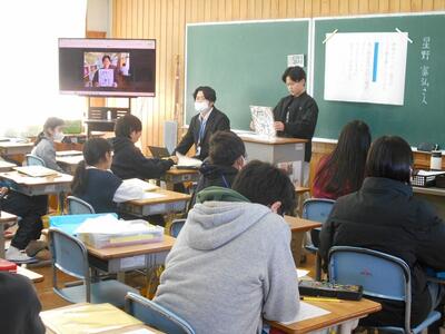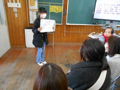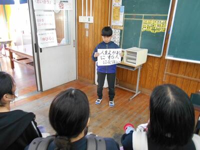 6年生です。卒業を控え、星野富弘さんの詩と自分の思いを重ね合わせた意見発表でした。