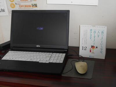 校長室には、職員の出勤を記録するパソコンを置いています。