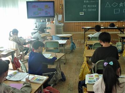 3年生が、外国語の学習で英語でカードを書いています。お母さんやサンタさん、兄弟など、自分がカードをおくりたい相手に書いていました。感謝の言葉や絵などを楽しそうに書いていました。