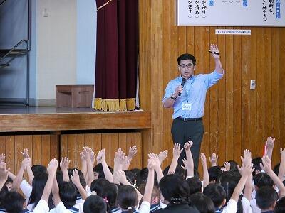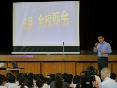 本日の全校朝会は、久しぶりに体育館で行いました。