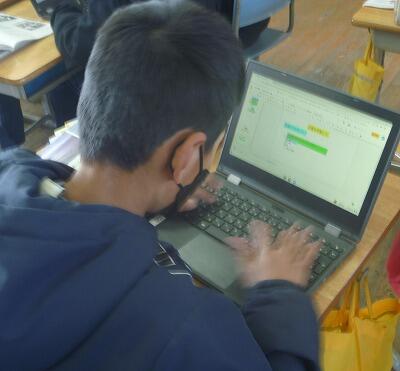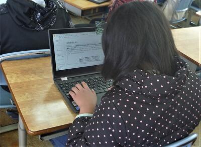 5年生が、社会の学習で公害について調べていました。タブレットPCを活用して、図やイラストなどを使って調べた内容を分かりやすくスライドにまとめています。高学年になると、調べたことをスライドにまとめたりジャムボードで意見を交流したりすることにすっかり慣れていて感心します。
