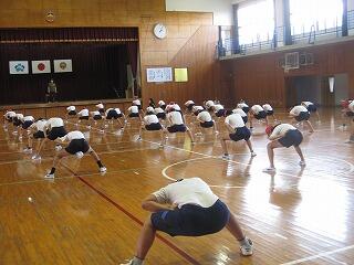 10月12日(火)、6年生がダンスの練習していました。練習してまだ1週間だそうですが「さすが6年生!」と声が出るほど動きが揃っていて迫力がありました。曲名は言いませんが、動きを見たらすぐに分かると思います。腰を低くしてかまえたり、飛び跳ねたり練習を頑張っています。