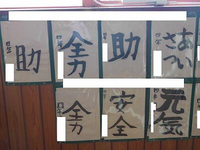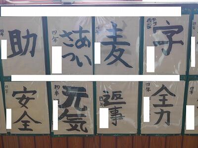 先日、4年生が習字の作品掲示をしていました。