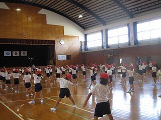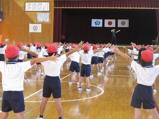 10月6日(水)、1年生が運動会のダンスの練習をしていました。先生の動きを見ながら、一つ一つ丁寧に覚えていました。途中でかっこいい決めポーズもあって、のりのりで練習していました。