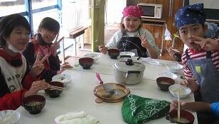 11月10日(水)、5年生がご飯とみそ汁を作っていました。お米をとぐ、ご飯を鍋で炊く、いりこで丁寧にだしをとるなど、初めて体験する子どもも多い学習です。目をキラキラさせながら、ご飯のおこげにも感動!!美味しそうに食べていました。