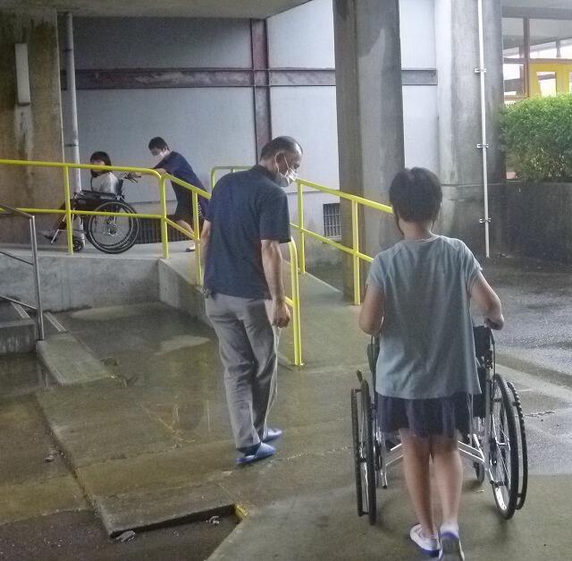 7月4日(月)、社会福祉協議会から3名が来校されて、4年生を対象に車いす体験学習がありました。説明を受けた後、交代で車いすに乗る体験や押す体験をしました。乗っている人の安全を考えてポイントごとに声をかけることや、ゆっくり進むことなどに気をつけて活動しました。