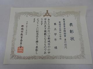 日頃の子どもたちのボランティア活動に対して、都城市教育委員会、五十市地区青少年育成協議会より表彰されました。