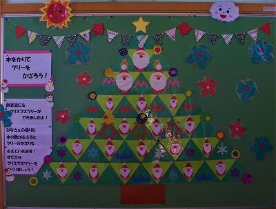 12月の学校図書館を紹介します。掲示物は、クリスマスや雪など冬の季節に変わりました。本をかりると、ツリーの飾りが増えていく楽しい掲示もありたくさん飾りがつきました。なるほどコーナーには、師走やクリスマスに関する豆知識が紹介されています。