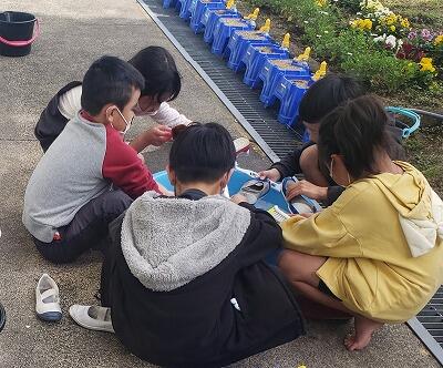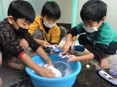 先週、1年生が生活科の学習で上ばきあらいの体験をしていました。普段からお家で洗っている子や初めて洗う子も、みんな一生懸命洗っていました。 洗い終わった後は、「きれい! 」と嬉しそうな様子でした。