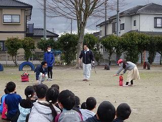 火災の避難訓練を行いました。消火器の使い方「ホッ・ピン・グー」を確認して、万が一への心構えを新たにしました。