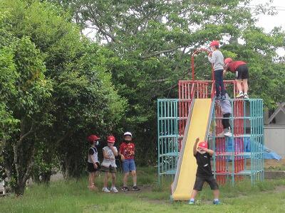 5月6日(木)は、1年生にとって初めての昼休みでした。4時間目に、昼休みの運動場での過ごし方等について学習していました。実際に校庭や運動場をまわって、、気をつけることや安全な遊具での遊び方などを教えてもらっていました。