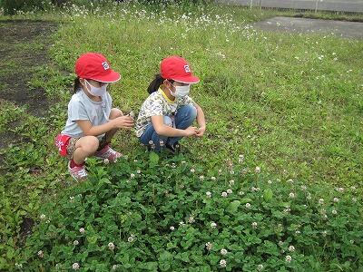 5月11日(火)は、久しぶりの昼休みでした。晴天の下、運動場では子どもたちが楽しそうに遊んでいました。1年生もジャングルジムや鉄棒などでうれしそうに遊んでいました。シロツメクサをつんで首飾りを作っている子もいました。