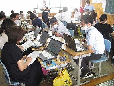 6月25日(金)は、支援訪問で教育委員会の皆様が来校され、終日、学校や子どもたちの様子を参観されました。子どもたちが落ち着いてすごせていると褒めていただきました。子どもの下校後は、4年生の研究授業を受けて、全職員で授業研究会をしました。いつものようにパソコンを使って活発に意見交換をしました。