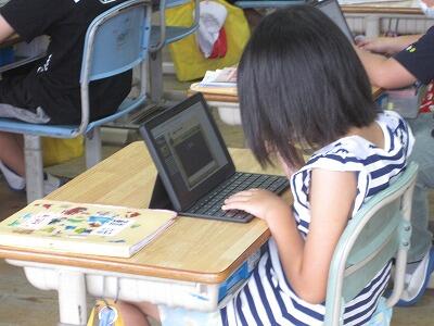 7月15日(木)、雨の日や暑さ指数が高くて外で遊べない日は、タブレットPCでタイピング練習をしている姿を見かけます。5年生の教室を見ると、難しい所などをお互いに教え合いながら、楽しそうにタイピング練習をしています。初級編から徐々にレベルを上げて、上級レベルを達成した子どもも出てきたようです。