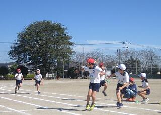 10月28日(木)、3年生が運動会に向けてリレーの練習していました。3チームに分かれて、選手の子ども達が力いっぱい走っていました。バトンパスも緊張感が伝わってきました。