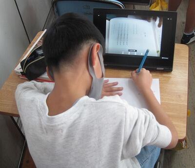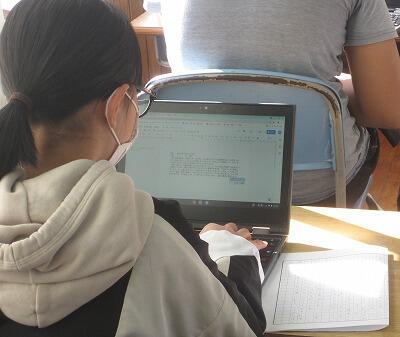 12月23日(木)、6年生がタブレットPCで卒業文集を作成しています。「6年間の思い出」や「将来の夢」について文章にしていました。書き終わると、先生に送信して添削をしてもらっていました。卒業に向けて準備が始まっているようです。