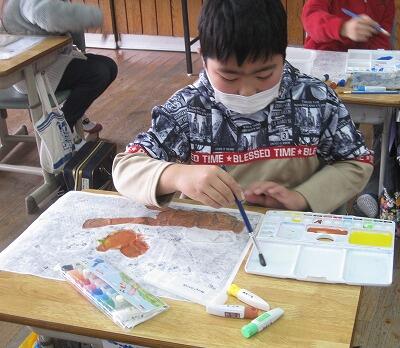 2月15日(火)、3年生の紙版画が最後の段階に入りました。イメージを広げて、思い思いの色をつけたら完成です。それぞれの作品を誇らしげに見せてくれました。