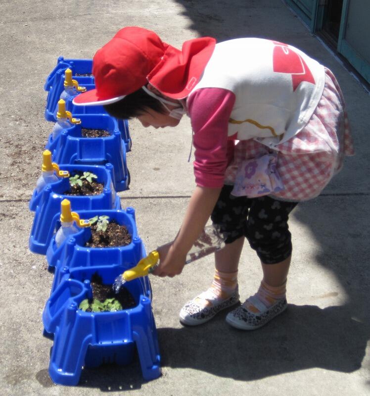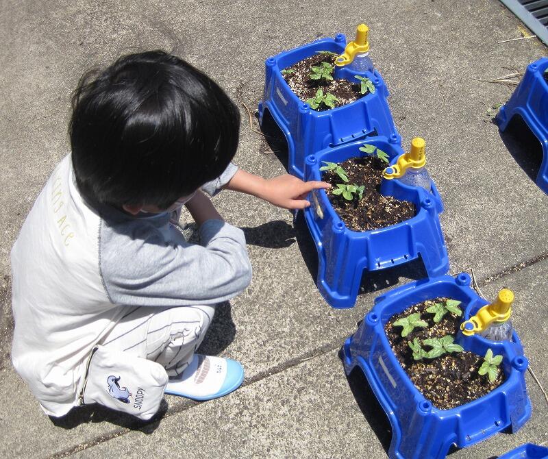 5月18日(水)、1年生が生活科の学習であさがおを育てています。毎日、水やりのお世話をがんばっています。芽が出て双葉も出てきました。「朝顔がお水をたくさん飲んで大きくなっています!」と嬉しそうでした。