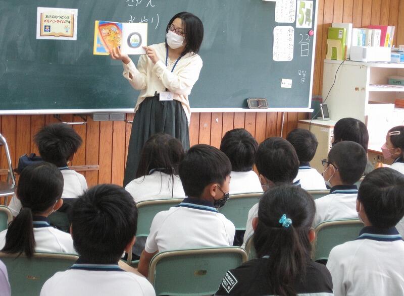 5月23日(月)、朝の読書の時間に読み聞かせボランティア「メルヘン」の皆様による絵本の読み聞かせがありました。今日は2年生と4年生でした。子ども達は毎週月曜日のメルヘンタイムを楽しみに待っています。