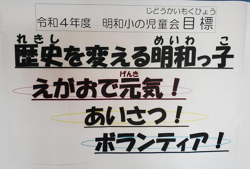 先週、代表委員会があり、本年度の児童会の目標が決定しました。各学年から出された言葉をキーワードにして、5・6年生の代表による話合いによって決定しました。